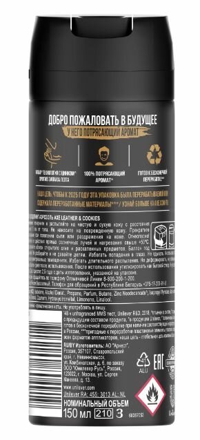 Axe Дезодорант-аэрозоль Leather & Cookies Кожа и печеньки, 150 мл