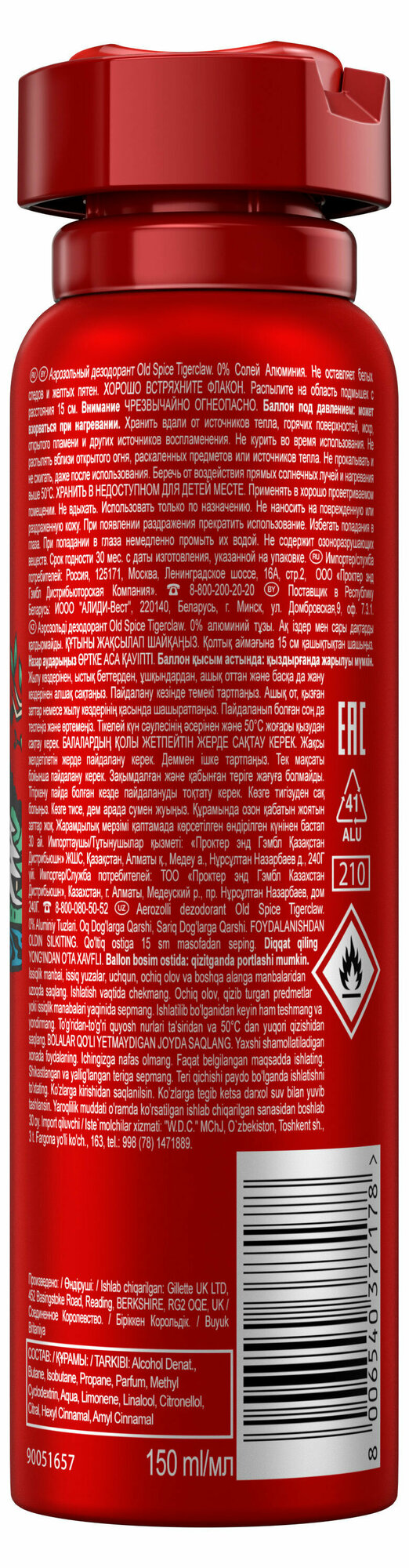 OLD SPICE мужской аэрозольный дезодорант Tiger Claw 150мл