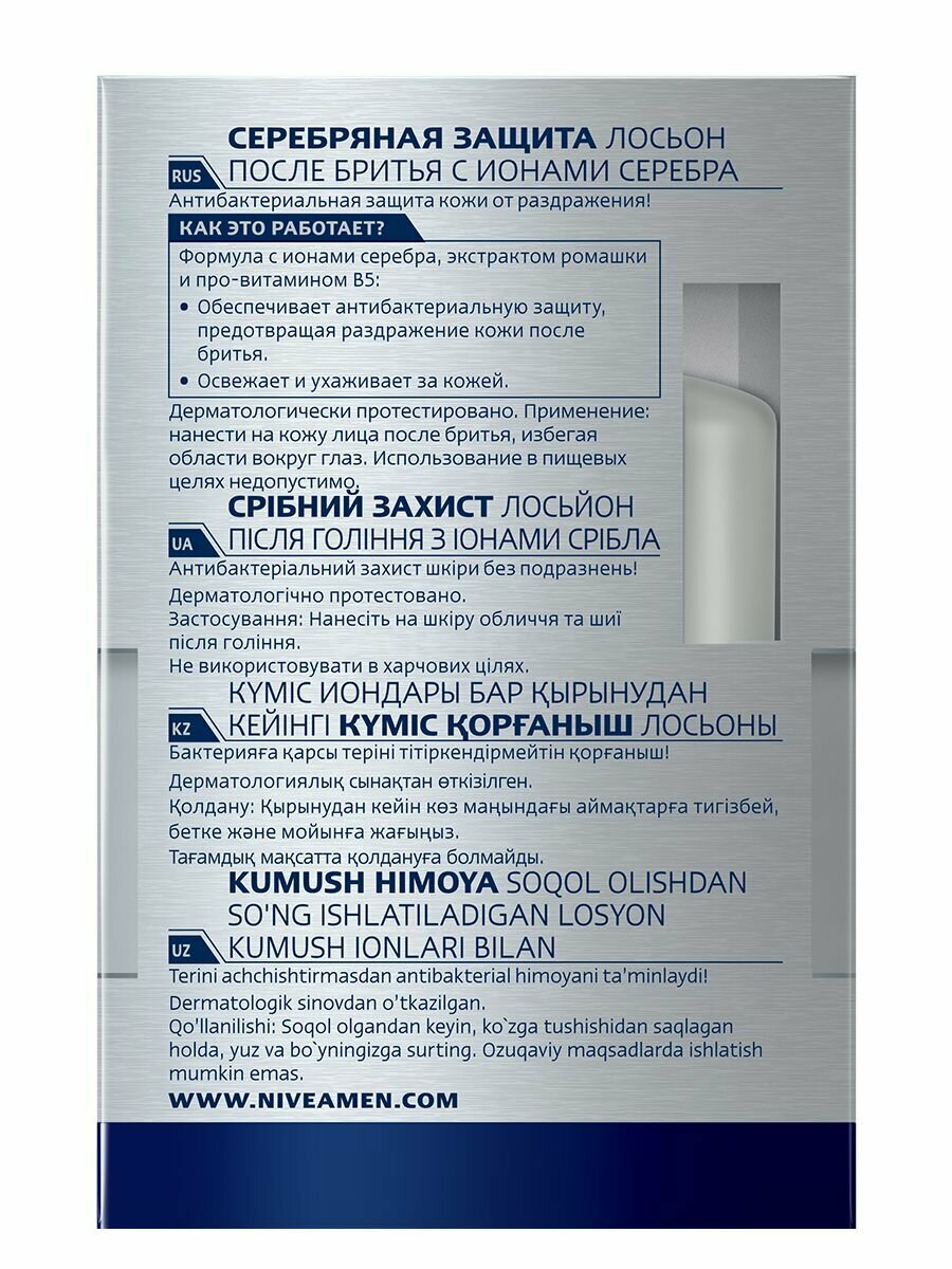 Лосьон после бритья NIVEA MEN "Серебряная защита" с ионами серебра и антибактериальным эффектом, 100 мл.