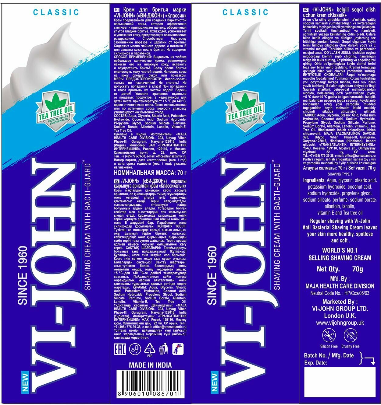Купить Крем для бритья VI-JOHN Классик, охлаждает, успокаивает и увлажняет кожу, 70 мл