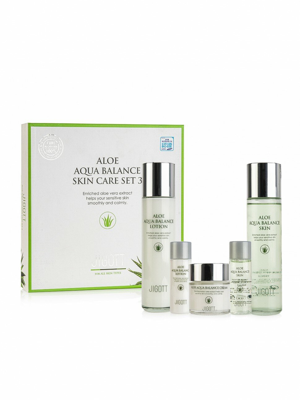 Купить JIGOTT ALOE AQUA BALANCE SKIN CARE 3SET Набор: Увлажняющий тонер для лица с экстрактом алоэ, Увлажняющий лосьон для лица с экстрактом алоэ, Увлажняющи 150мл+150мл+30мл+30мл+50мл