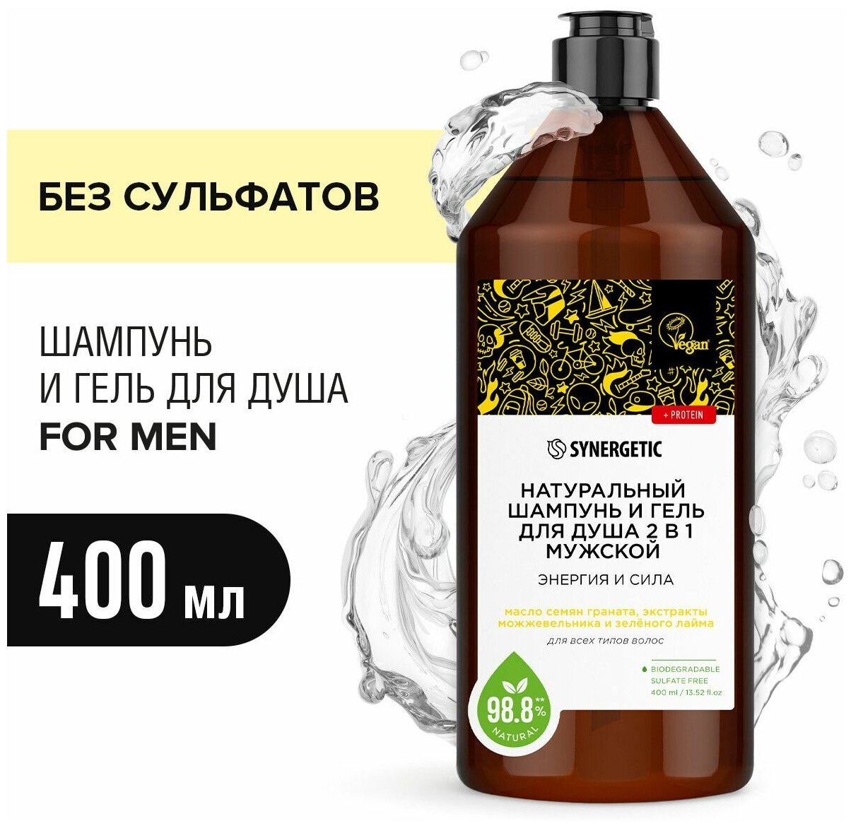 Купить Натуральный бессульфатный шампунь и гель для душа 2 в 1 мужской,400мл