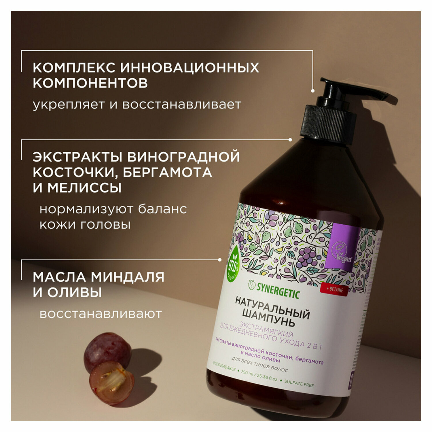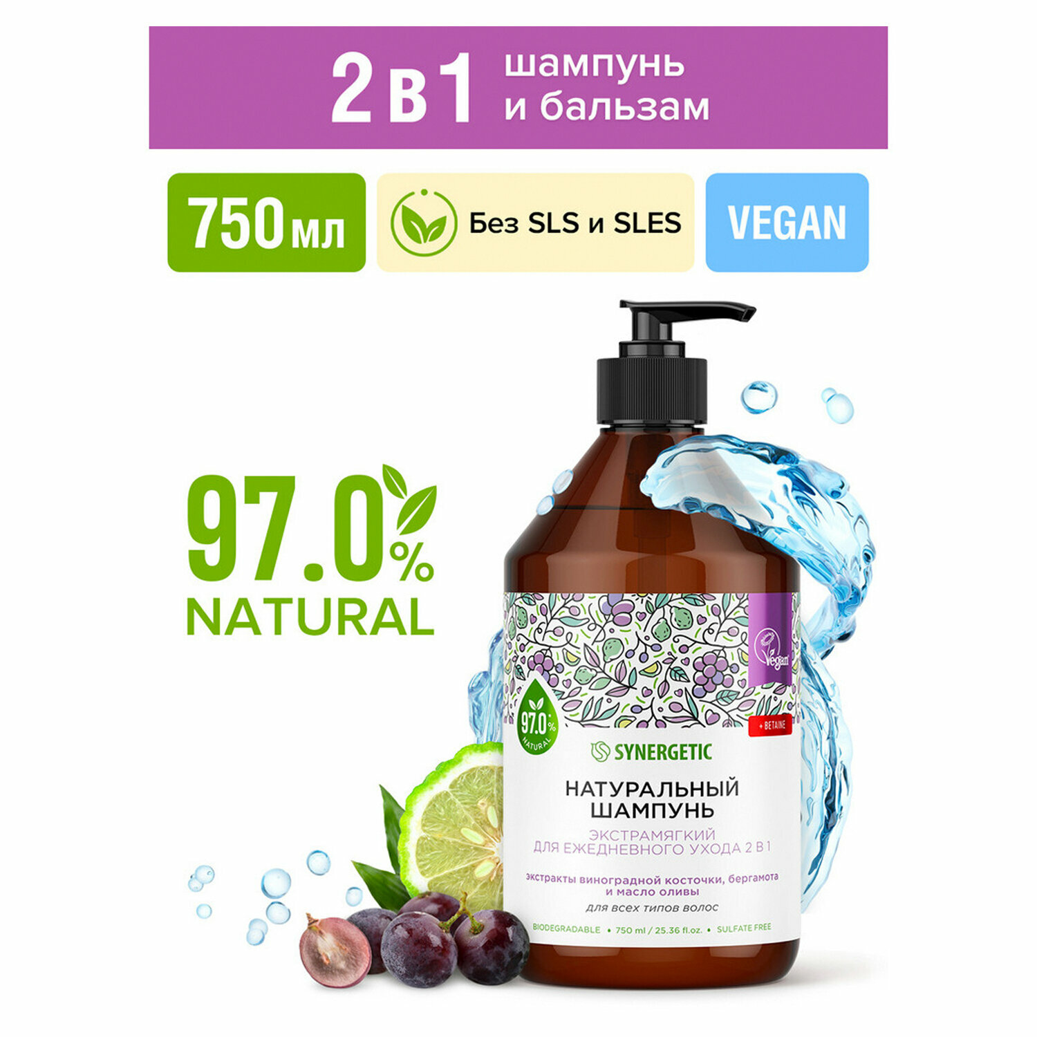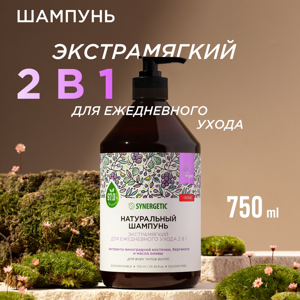 Бессульфатный шампунь Synergetic Экстрамягкий для ежедневного ухода 2в1, 750 мл