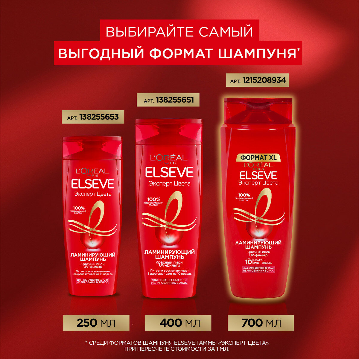 L'Oreal Paris Elseve Ламинирующий шампунь "Эксперт Цвета", для окрашенных или мелированных волос, 700 мл