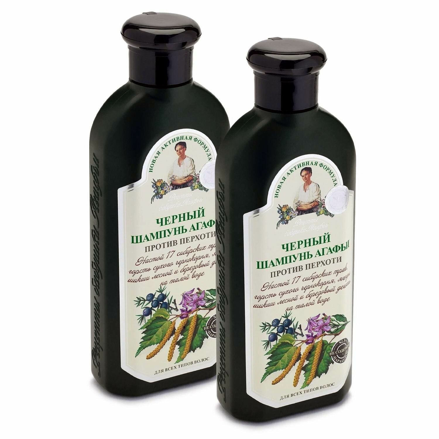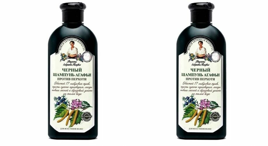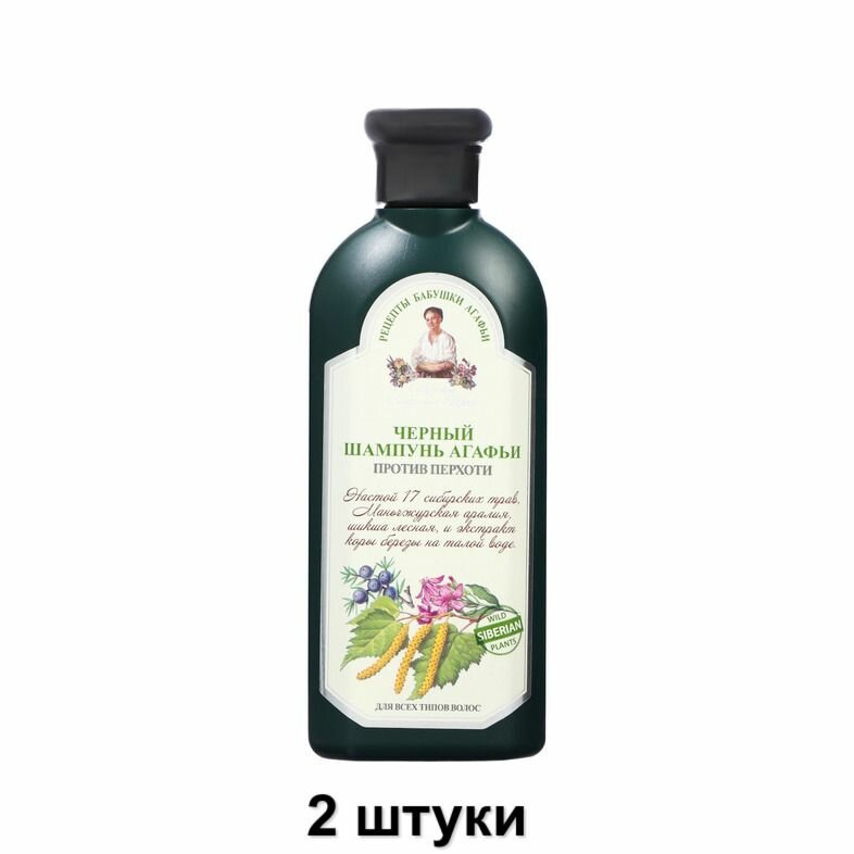 Рецепты бабушки Агафьи Шампунь для волос черный Против перхоти, 350 мл, 2 шт