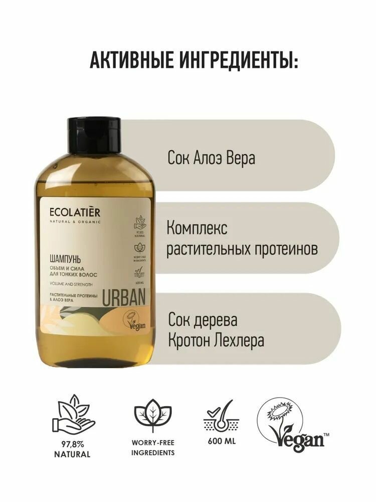 Ecolatier Urban Шампунь Объем и сила для тонких волос растительные протеины & алоэ вера 600 мл 1 шт