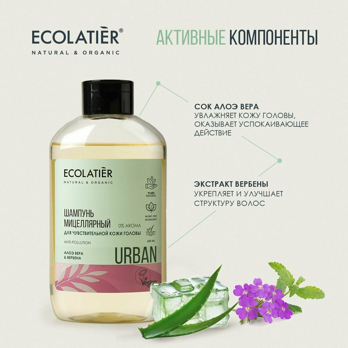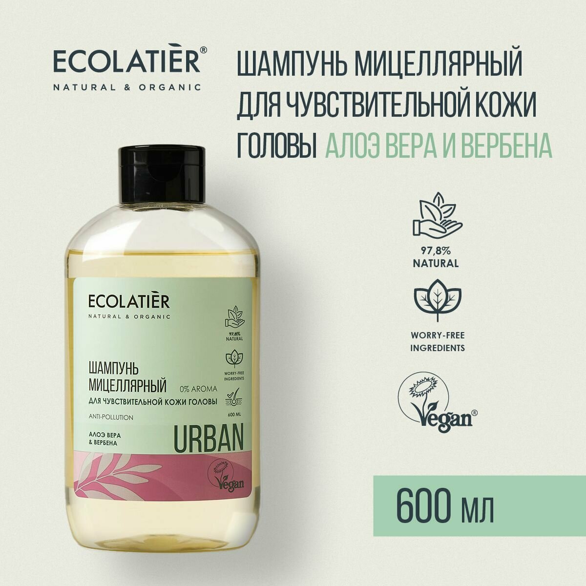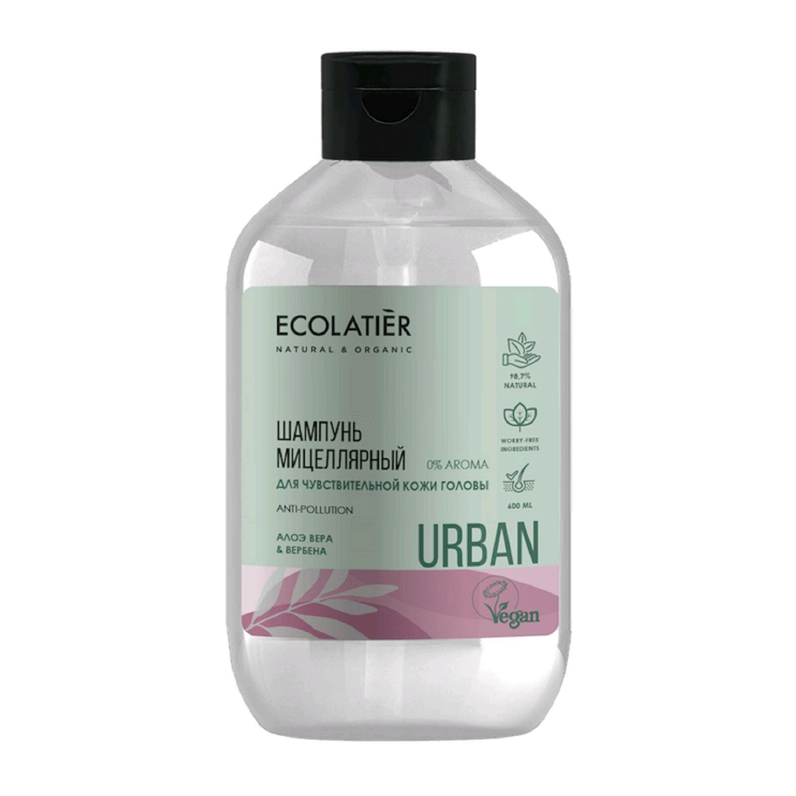 Ecolatier Urban Мицеллярный шампунь для чувствительной кожи головы Алоэ вера и вербена 600 мл