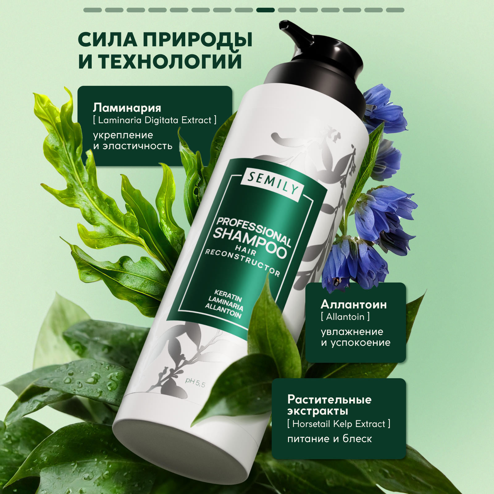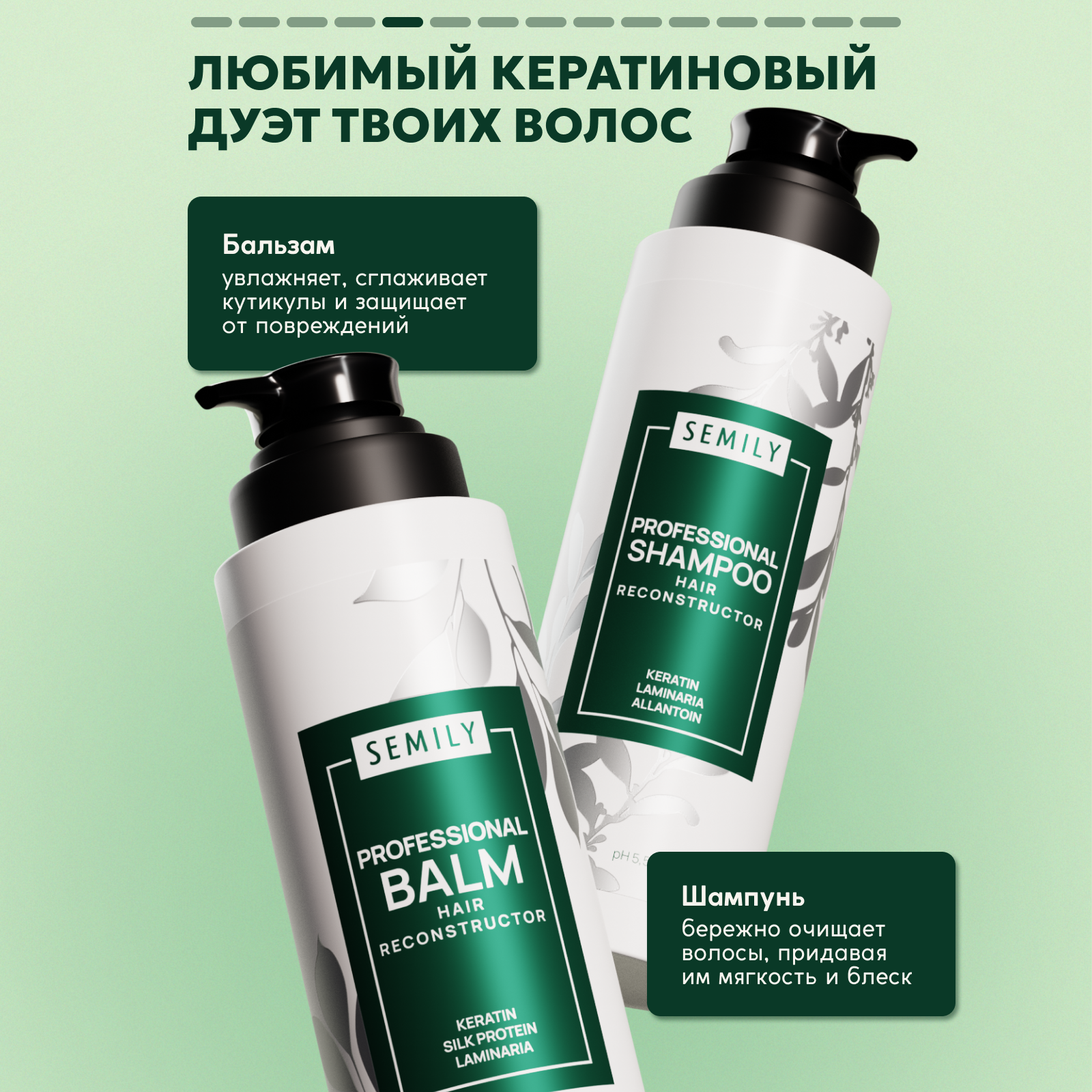 Купить Шампунь для волос женский с кератином Semily бессульфатный 1шт, 400мл