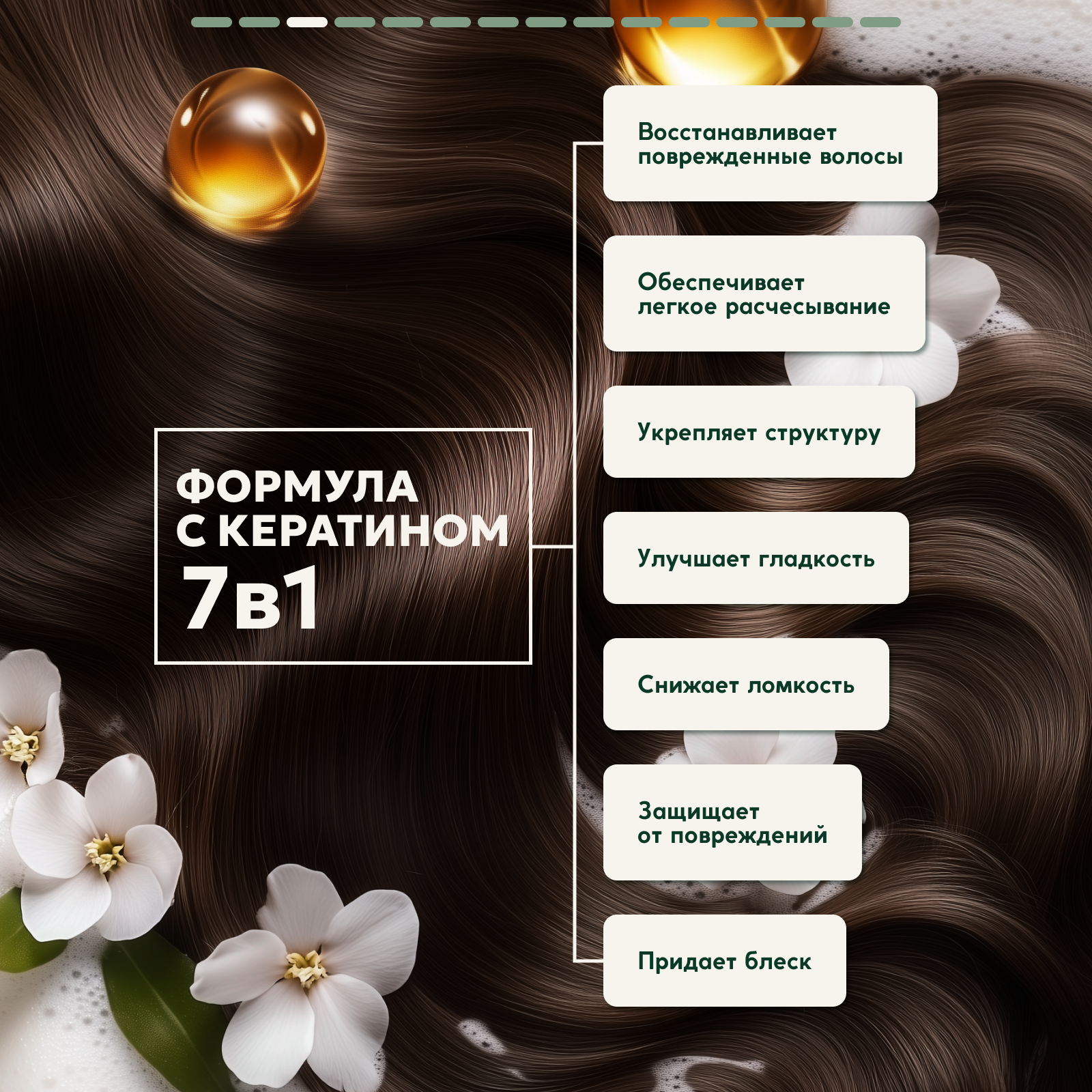 | Активный ингредиент | витамин E / кератин / морские водоросли / протеины шелка |