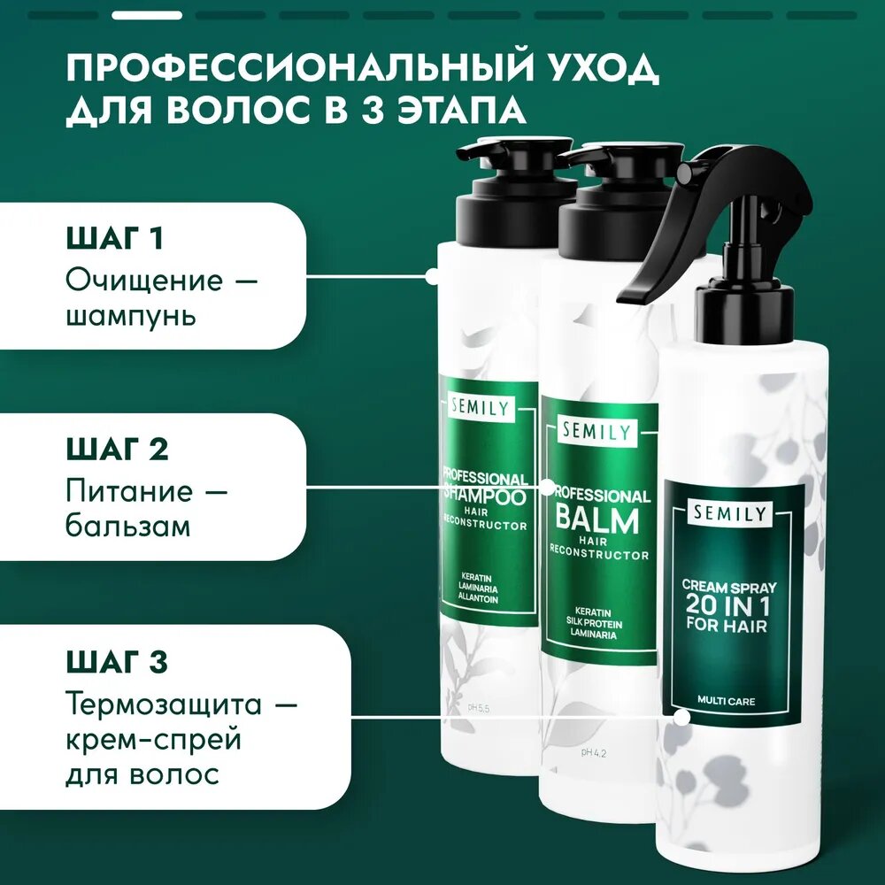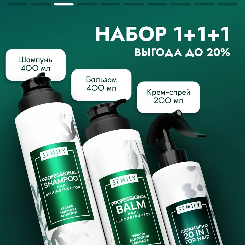 Шампунь, бальзам и спрей 20в1 для волос от бренда Semily 400+400+200мл