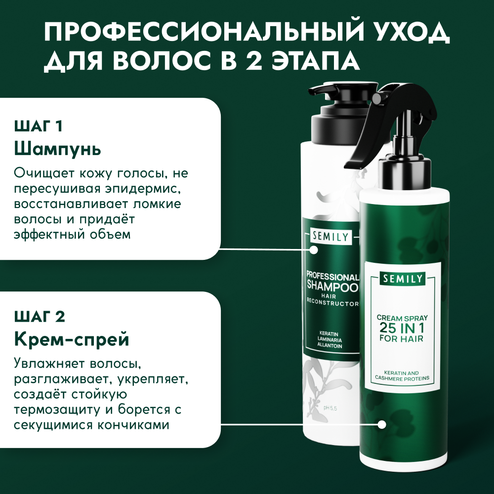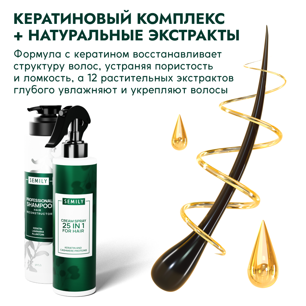 Купить Шампунь и спрей для волос Semily, кератиновый комплекс, 25 в 1, 400 + 200 мл