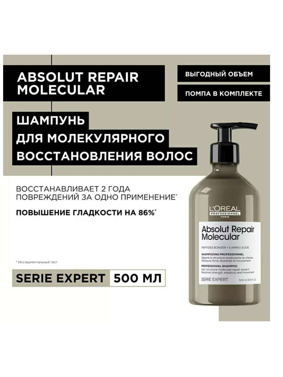 L'OREAL PROFESSIONNEL Шампунь для молекулярного восстановления волос Absolut Repair Molecular Shampoo (500 мл)