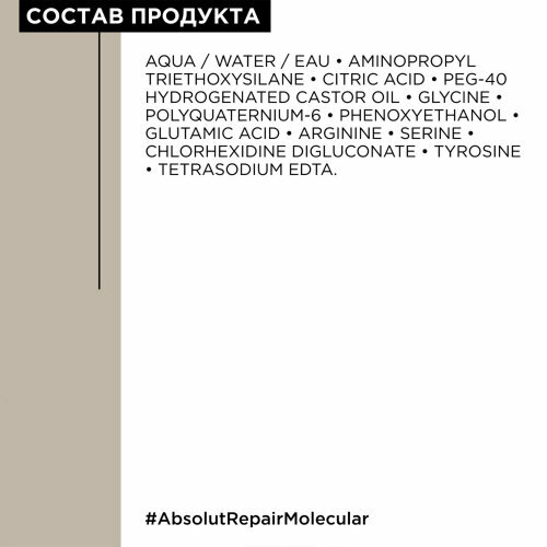 | Активный ингредиент | аминокислоты / витамин E / глицерин / кератин / комплекс витаминов / пептиды / протеины / протеины пшеницы / салициловая кислота |