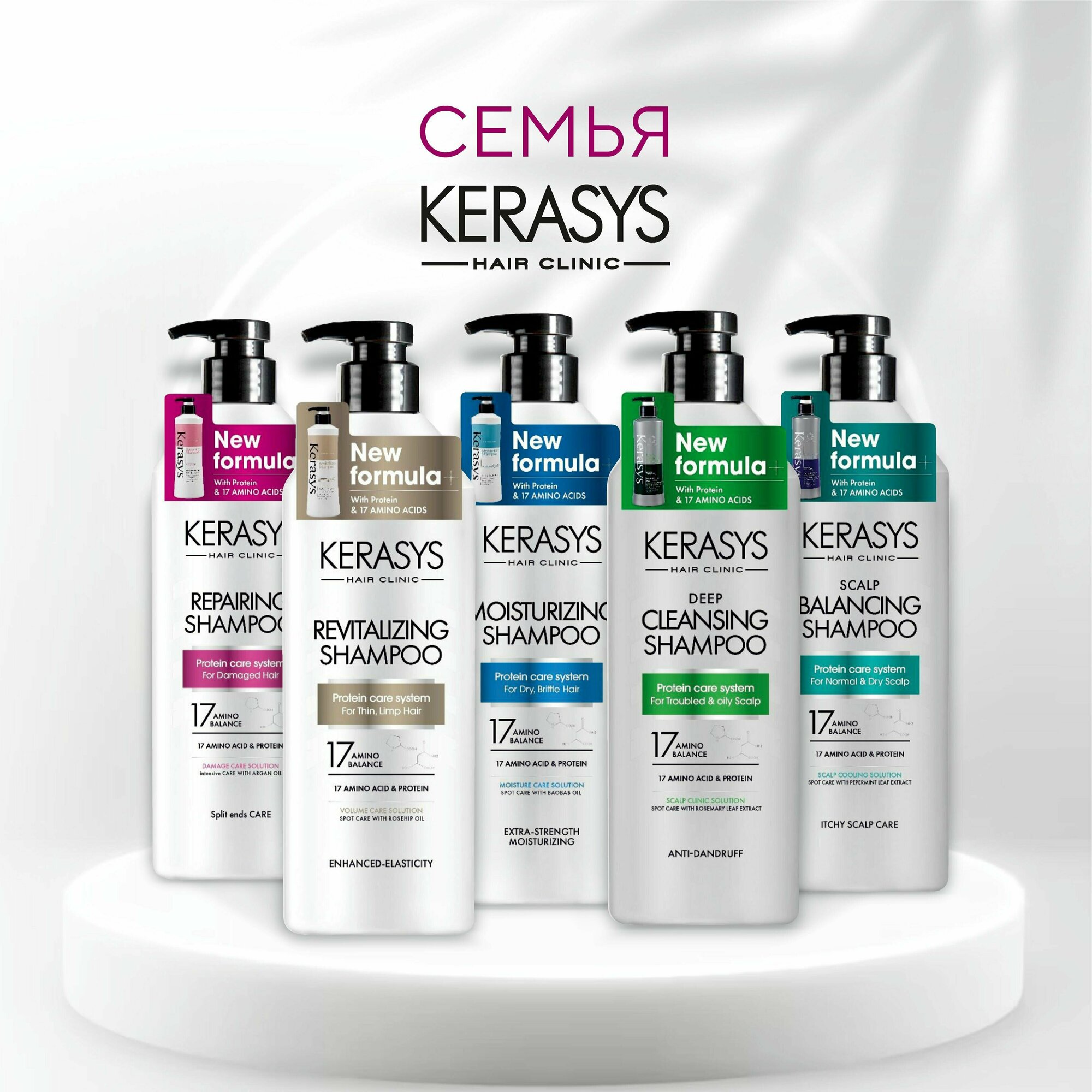 Kerasys Профессиональный Корейский шампунь восстанавливающий 600 мл, протеиновый женский для поврежденных, окрашенных, сухих и ослабленных волос