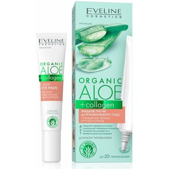 Жидкие патчи для кожи вокруг глаз EVELINE ORGANIC Алое + Коллаген (от темных кругов и отеков) 20 мл
