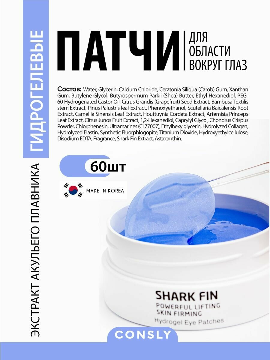 Гидрогелевые патчи для области вокруг глаз с экстрактом акульего плавника, 60 шт, Consly