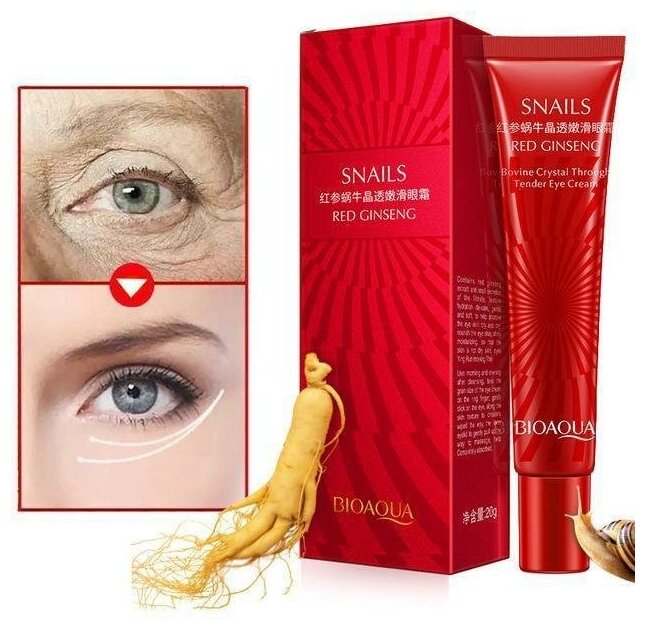 BioAqua Крем для области вокруг глаз с муцином улитки и красным женьшенем Snails Red Ginseng