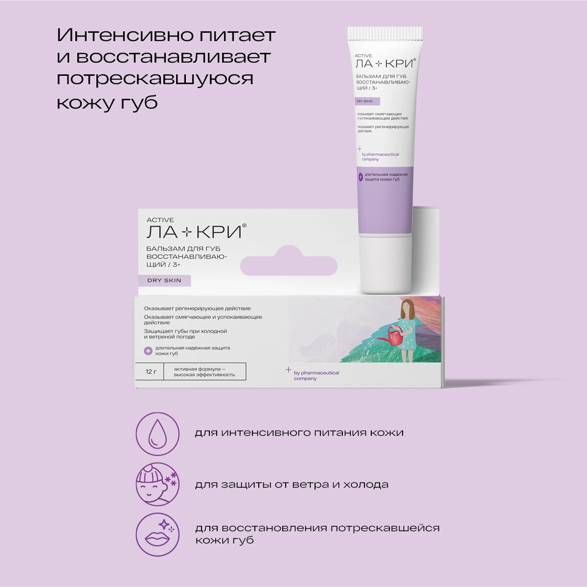 Бальзам для губ Восстанавливающий, 3+, 12 гр, Ла-кри