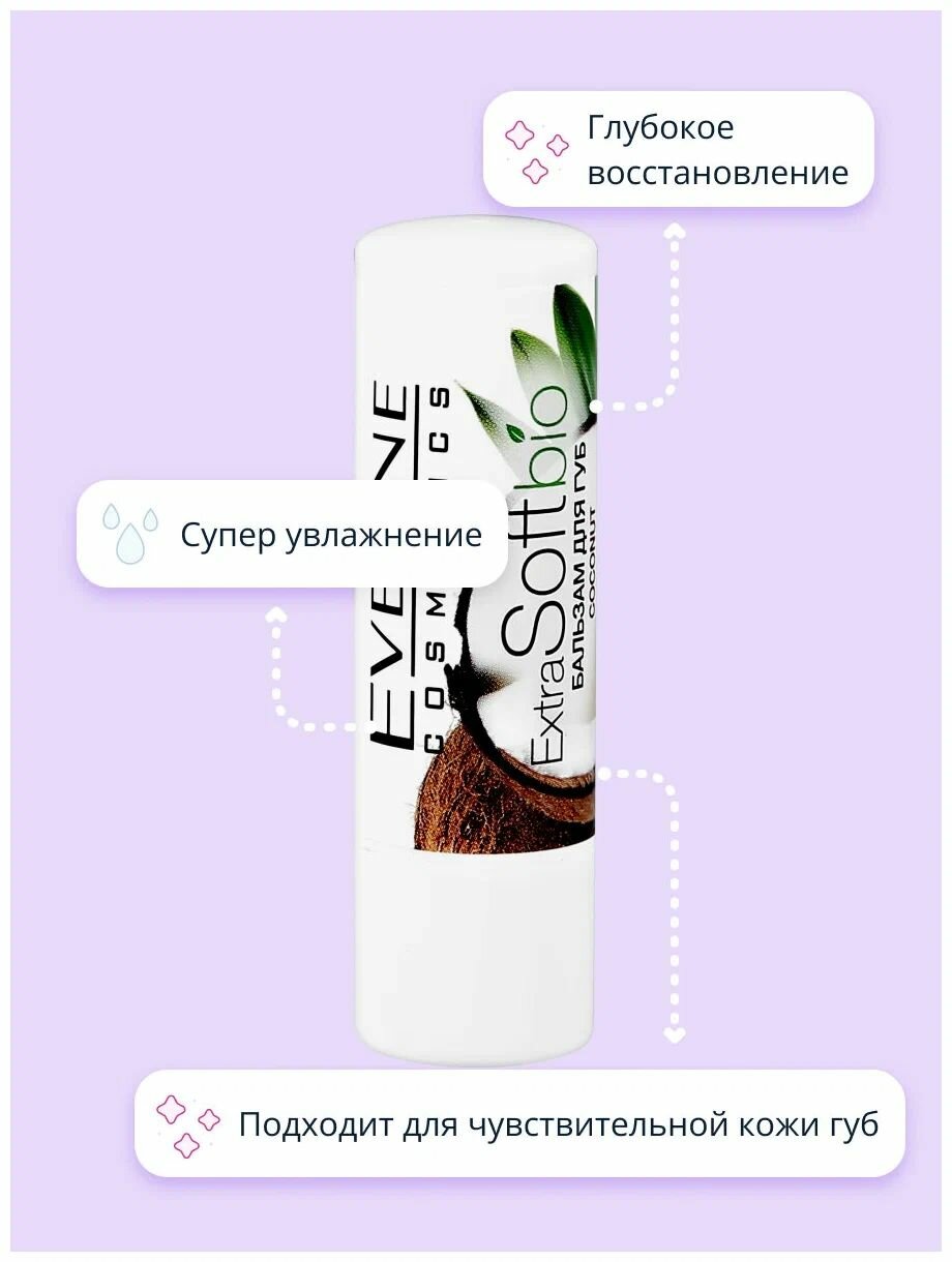 Купить Бальзам для губ EVELINE EXTRA SOFT bio кокос, 10 ил