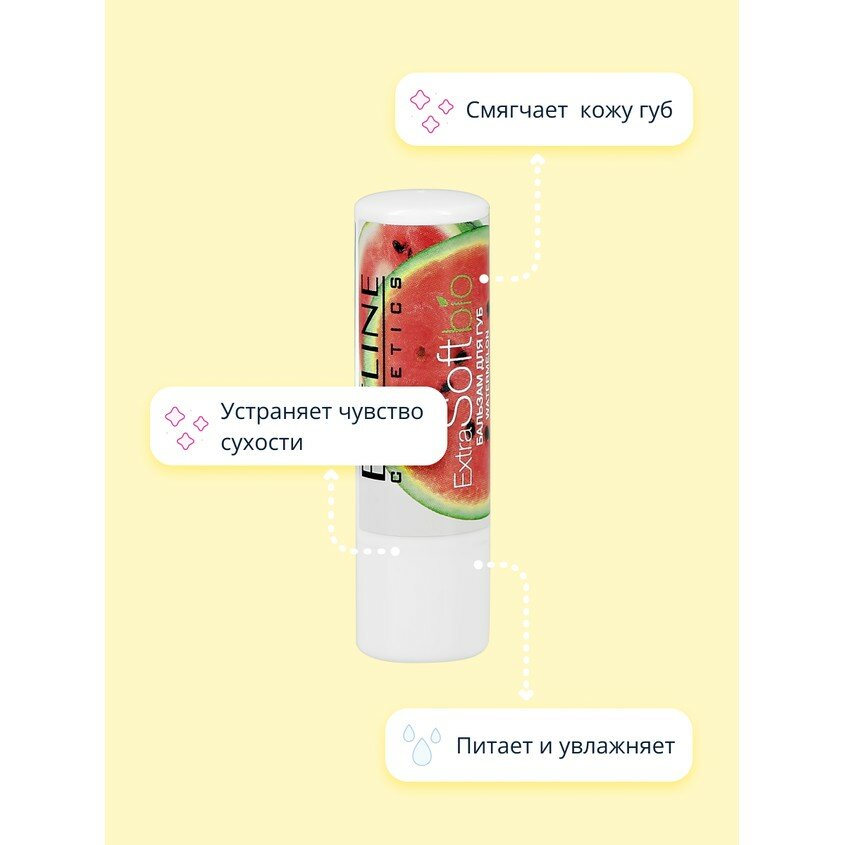 Бальзам для губ `EVELINE` `EXTRA SOFT` BIO со вкусом арбуза интересное: