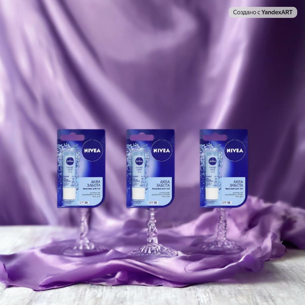 Бальзам для губ Nivea, Аква забота, 4,8 г, 3 шт