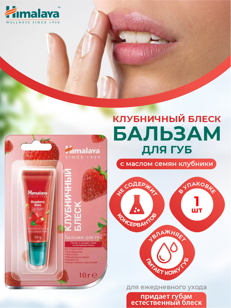 Himalaya Since 1930 Бальзам для губ "Клубничный блеск" увлажняющий, питательный, натуральный, оттеночный, 10 г.