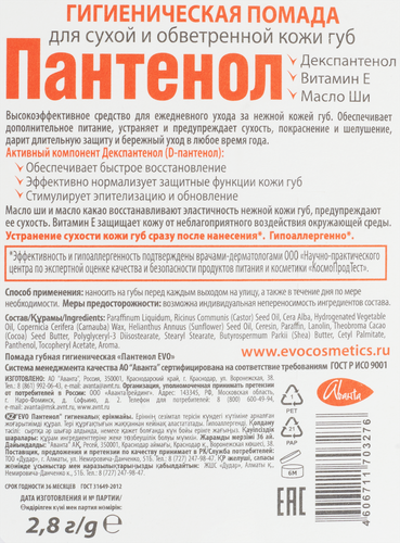 Бальзам для губ EVO Пантенол 2,8г гигиеническая в блистере