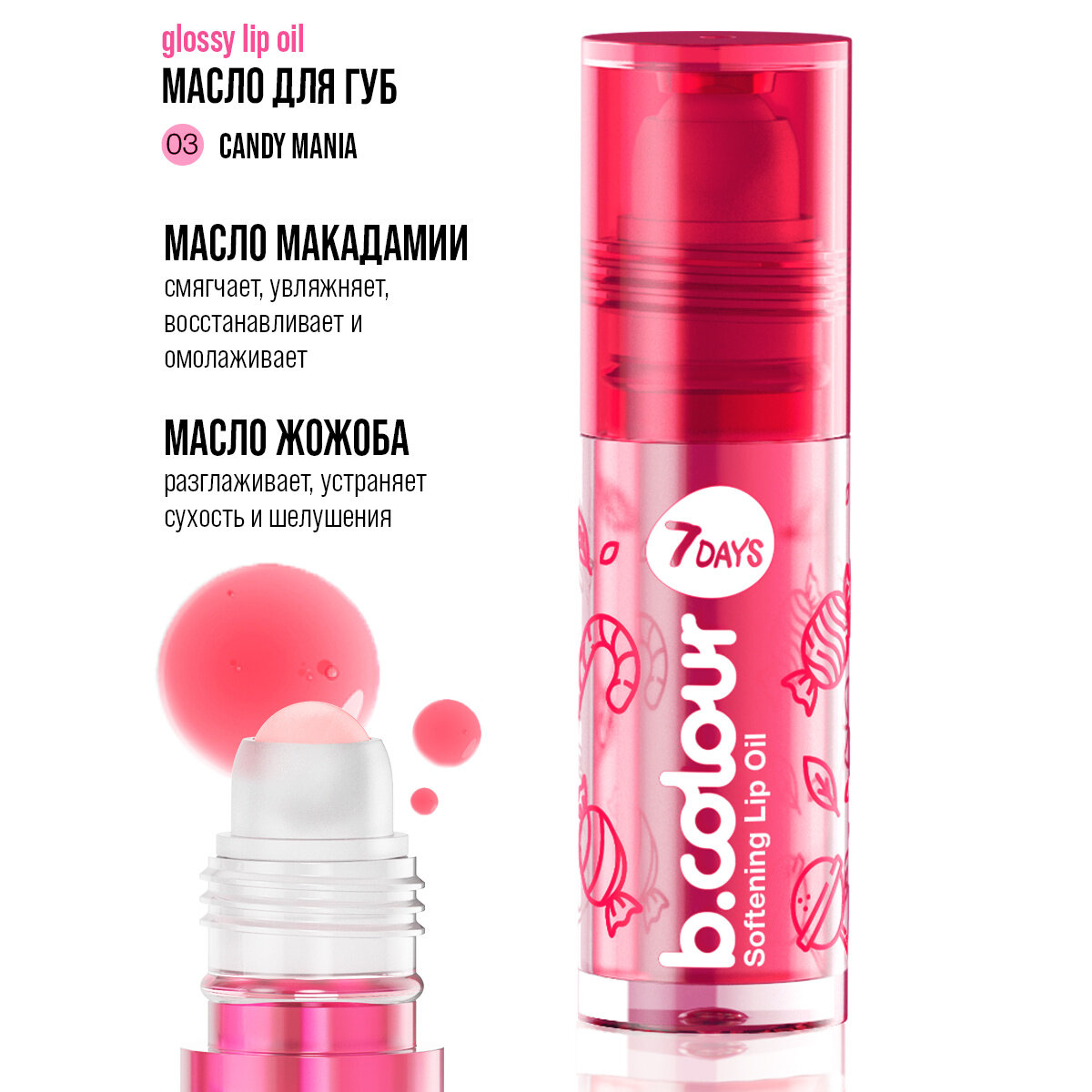 Масло для губ смягчающее 7Days B.Colour, тон: 03 Candy Mania, 4 мл интересное: