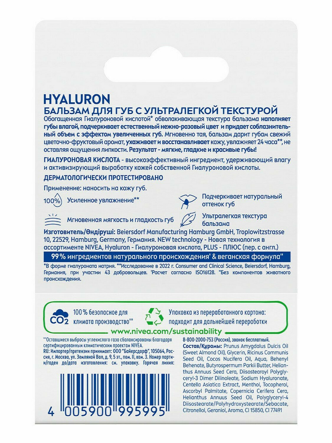 NIVEA Бальзам для губ Hyaluron, 5,2 г