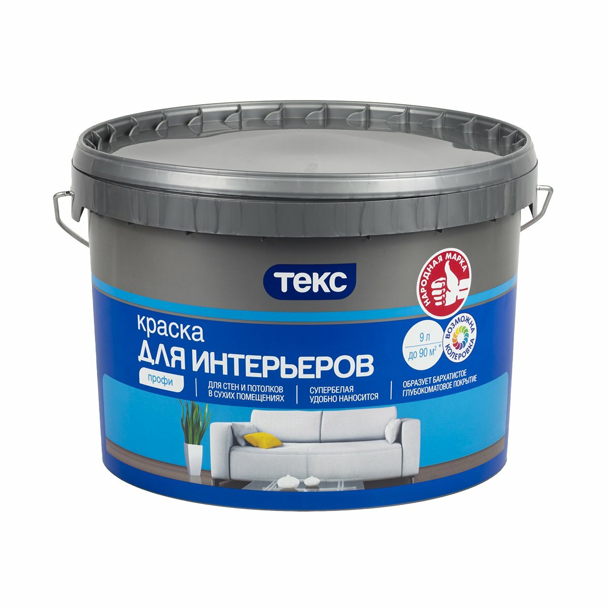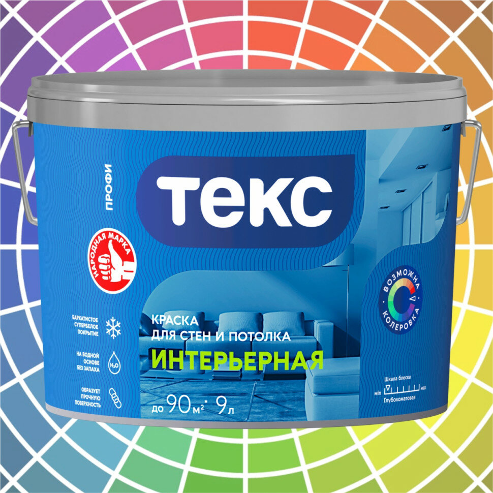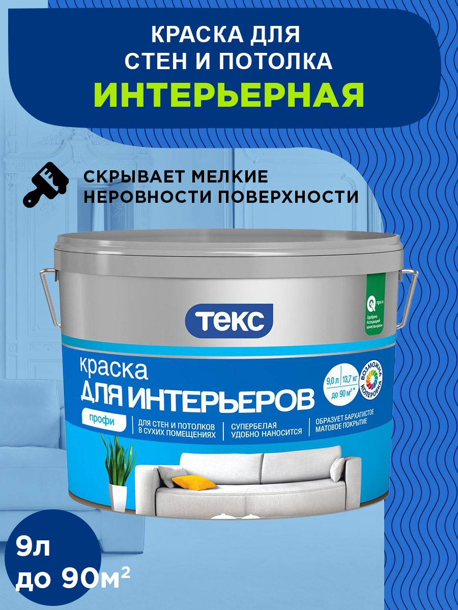 Текс Интерьерная краска в/д (9л) профи / текс Для интерьеров краска для стен и потолков в сухих помещениях (9л) класс профи