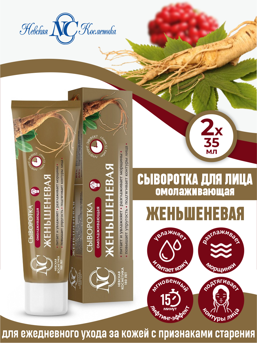 Купить Невская косметика Сыворотка для лица Женьшеневая, омолаживающая, 35 мл, 2 шт
