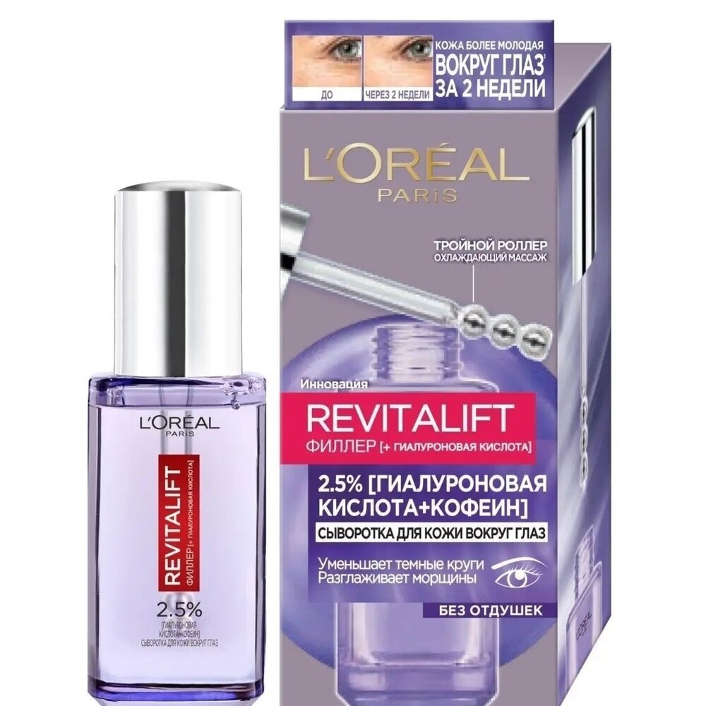 L'OREAL Сыворотка для лица и шеи Revitalift филлер c 1,5% чистой гиалуроновой уислотой, 15 мл