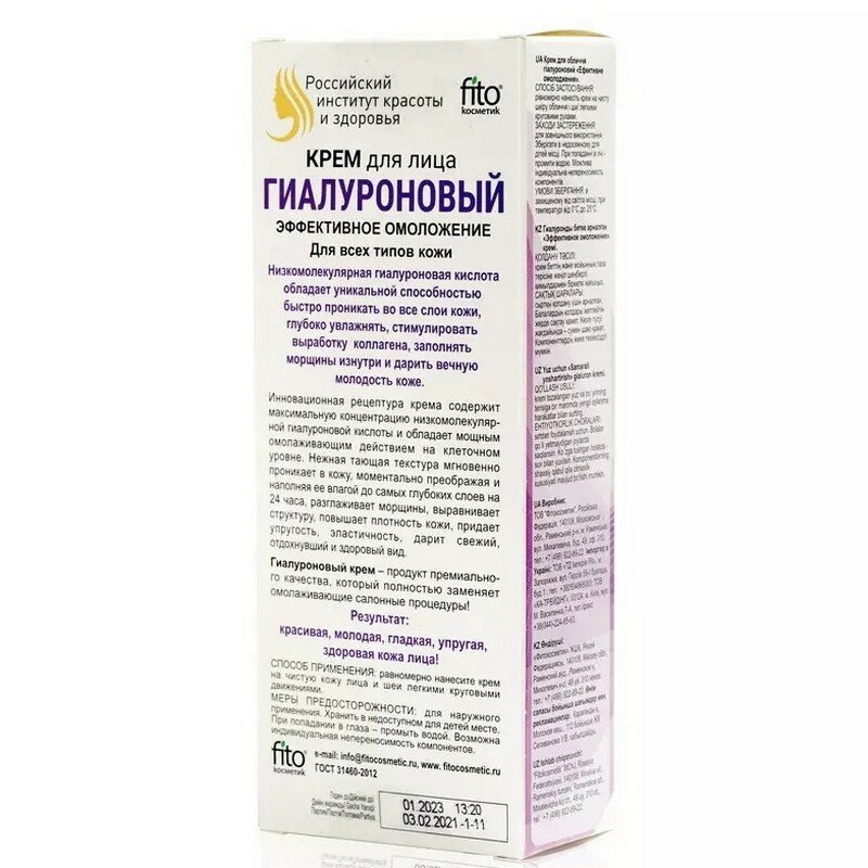Fito косметик Крем для лица гиалуроновый Эффективное омоложение, 45 мл