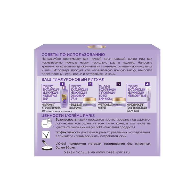 Loreal Гиалурон Эксперт Ночная крем-маска для лица с гиалуроновой кислотой 50 мл 1 шт интересное:
