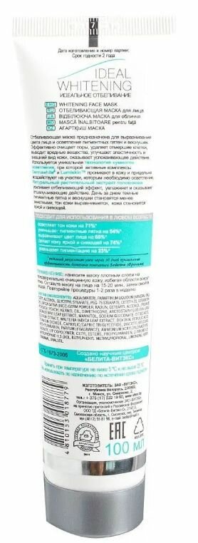 Витэкс Отбеливающая Маска для лица "идеальное отбеливание", против веснушек и пигментных пятен, 100 мл интересное: