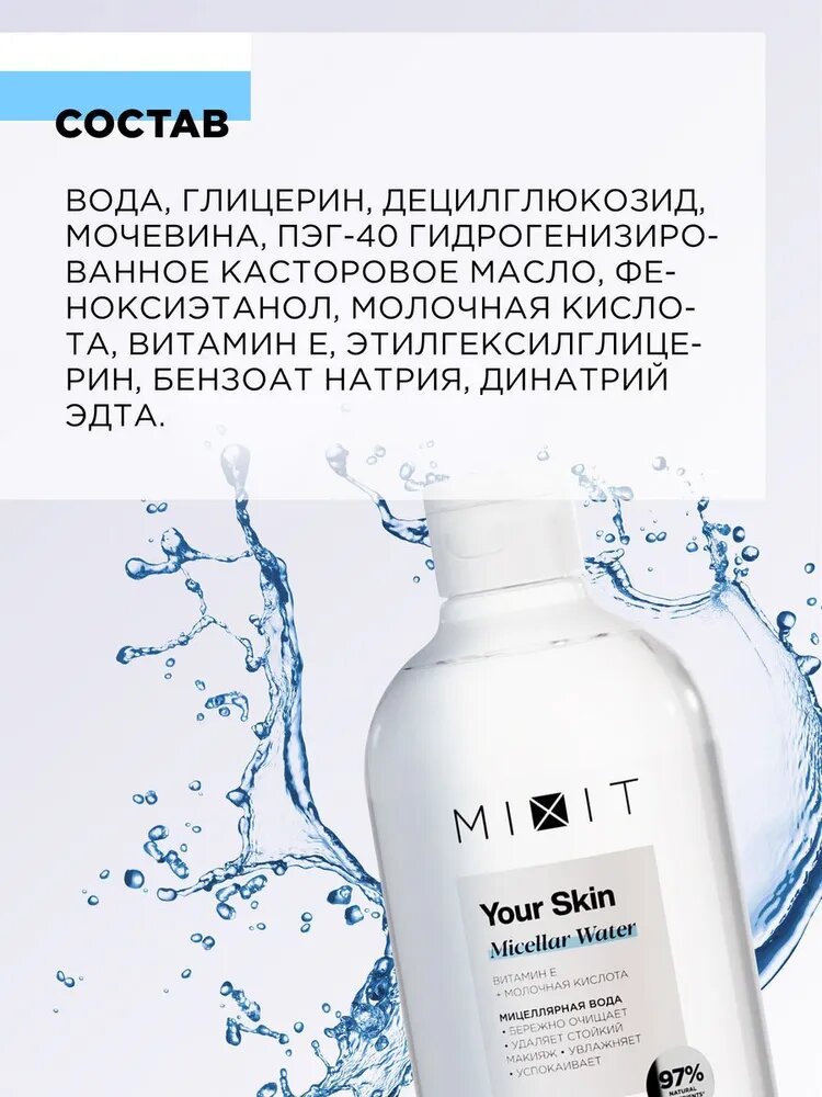 MIXIT Очищающая мицеллярная вода для умывания лица и демакияжа YOUR SKIN, 500 мл интересное: