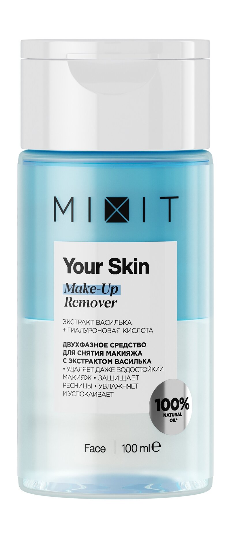 Средство для снятия водостойкого макияжа MIXIT Your Skin Make-Up Remover, двухфазное, профессиональное, с экстрактом василька, 100 мл