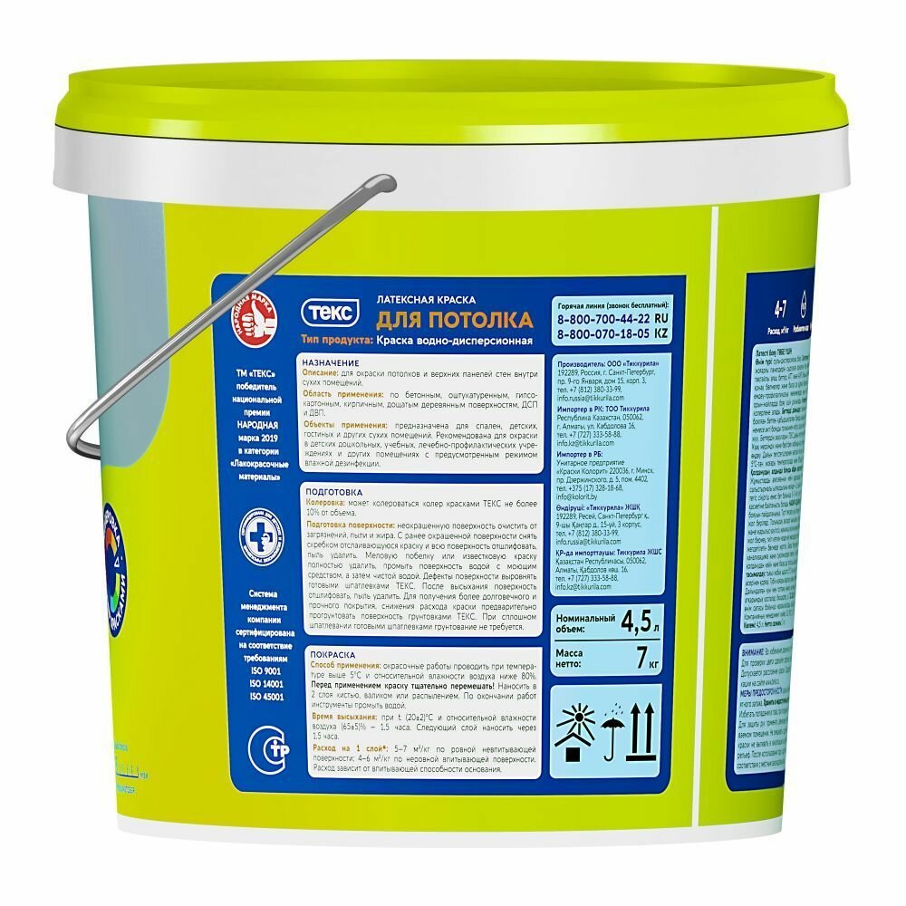 Купить Краска для потолков латексная, Текс, глубокоматовая, белая, 7 кг