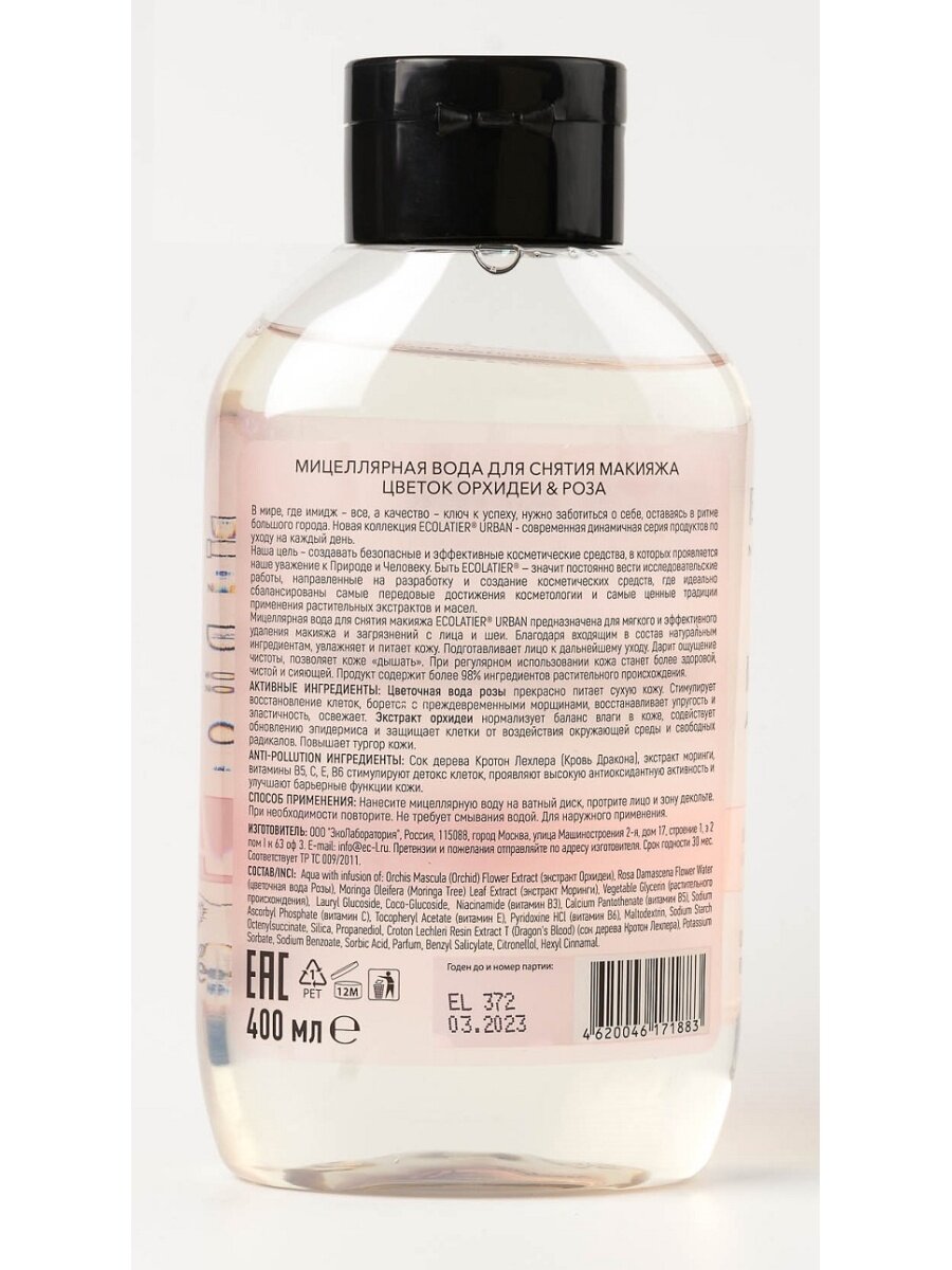 Купить Мицеллярная вода для снятия макияжа цветок орхидеи & роза, 400 мл, Ecolatier