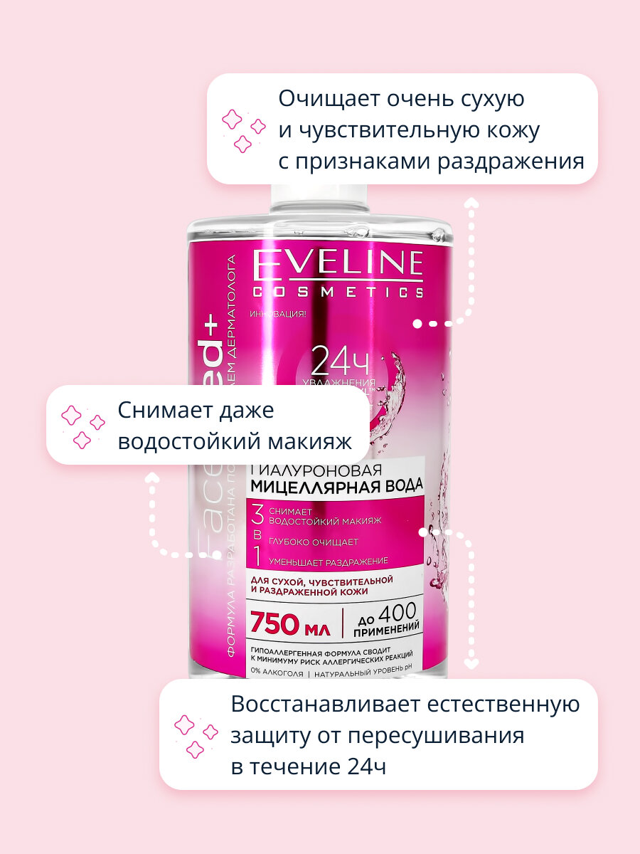 Купить Мицеллярная вода для лица EVELINE, FACEMED +, 3 в 1, гиалуроновая, 750 мл