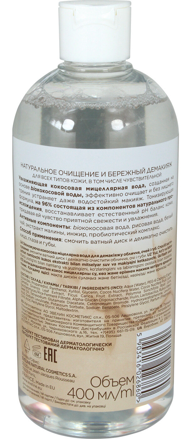 Мицеллярная вода EVELINE RICH COCONOUT увлажняющая 400 мл
