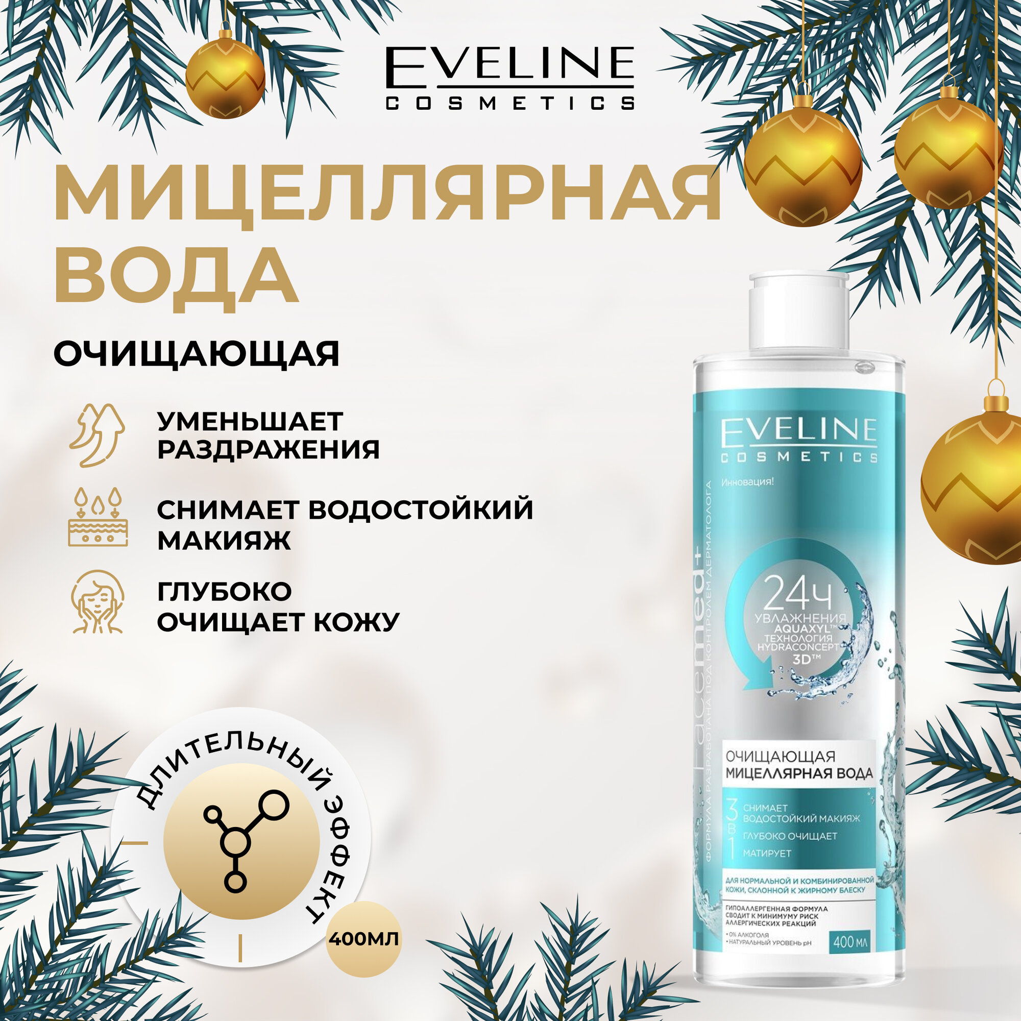 Мицеллярная вода 3в1 EVELINE FACEMED+ Очищающая для снятия макияжа, 400 мл интересное: