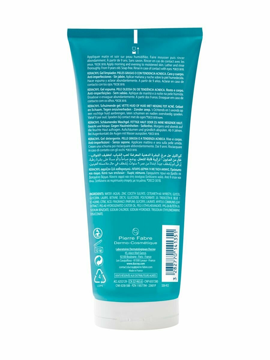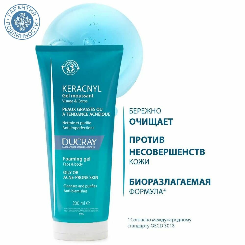 Ducray Keracnyl гель очищающий пенящийся для лица и тела 200 мл 1 шт