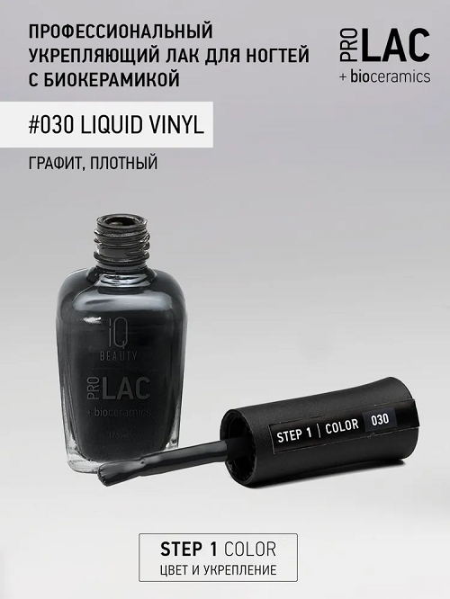 Купить IQ Beauty №030 Liquid vinyl - Айкью Бьюти Лак для ногтей профессиональный укрепляющий с биокерамикой №030 (графит), 12,5 мл -
