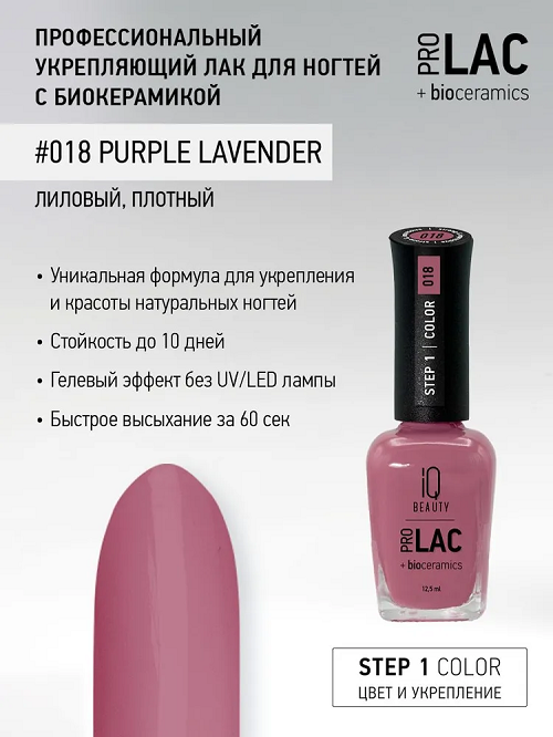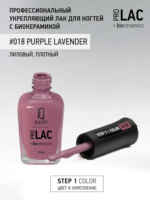 Купить IQ Beauty №018 Purple lavender - Айкью Бьюти Лак для ногтей профессиональный укрепляющий с биокерамикой №018 (лиловый), 12,5 мл -