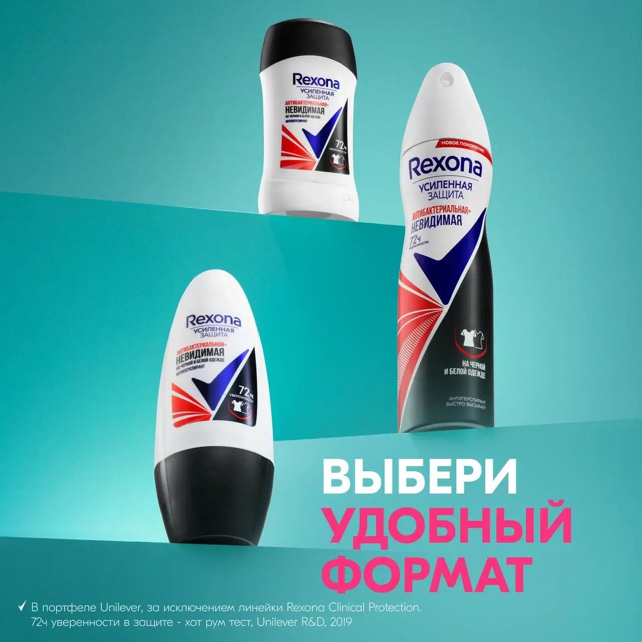 Антиперспирант аэрозоль Rexona Антибактериальная и невидимая на черном и белом 150 мл.