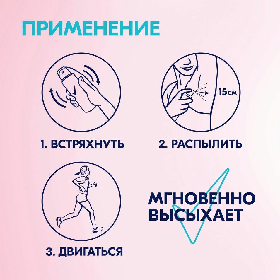 | Дополнительная информация | способ применения: тщательно встряхните баллон, распыляйте 2-3 секунды на сухую и чистую кожу подмышек с расстояния 15 см от тела Для достижения оптимального эффекта: можно использовать утром как базовый антиперспирант, но для достижения оптимального эффекта рекомендуется наносить его на сухую и чистую кожу подмышек перед сном. Ночью, когда организм отдыхает, и потовые железы наименее активны, кожа наиболее восприимчива к действию формулы |