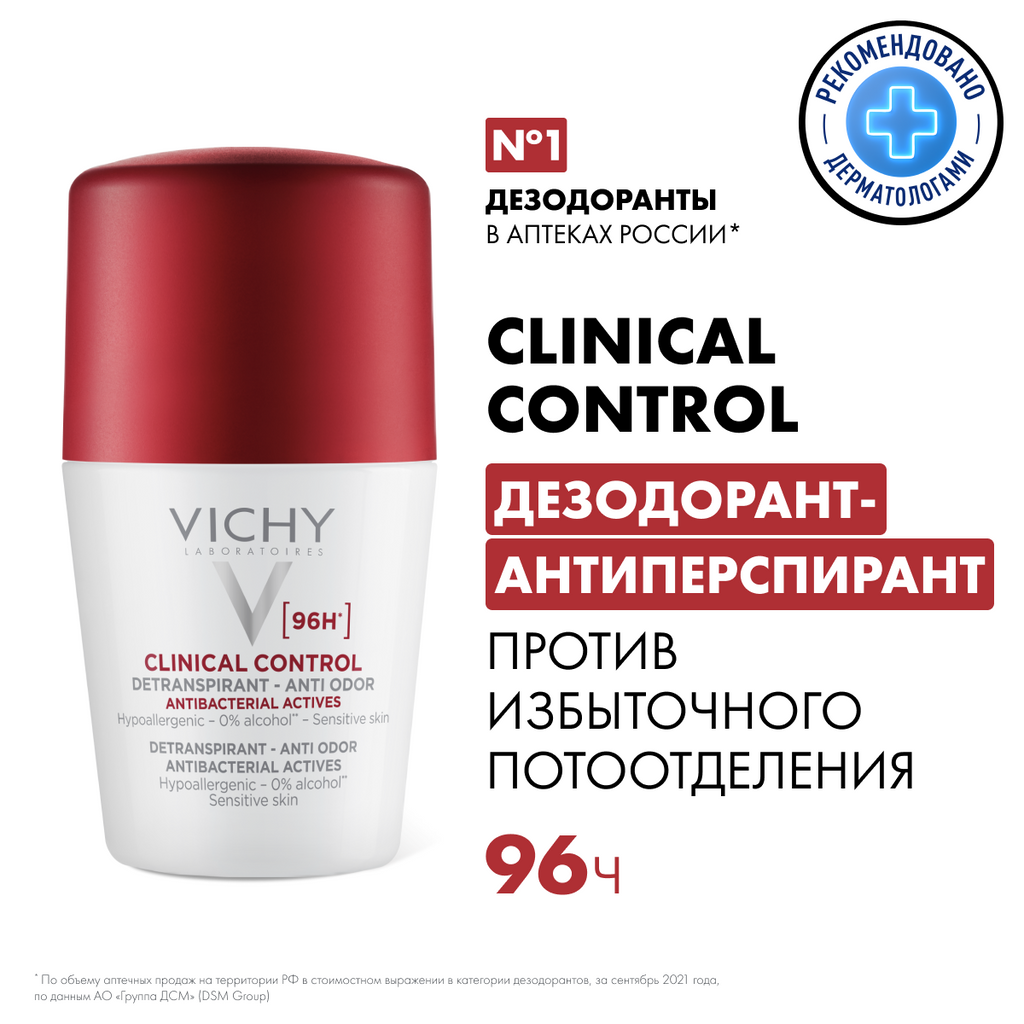 Vichy Clinical Control Дезодорант-антиперспирант против избыточного потоотделения 50 мл 1 шт интересное: