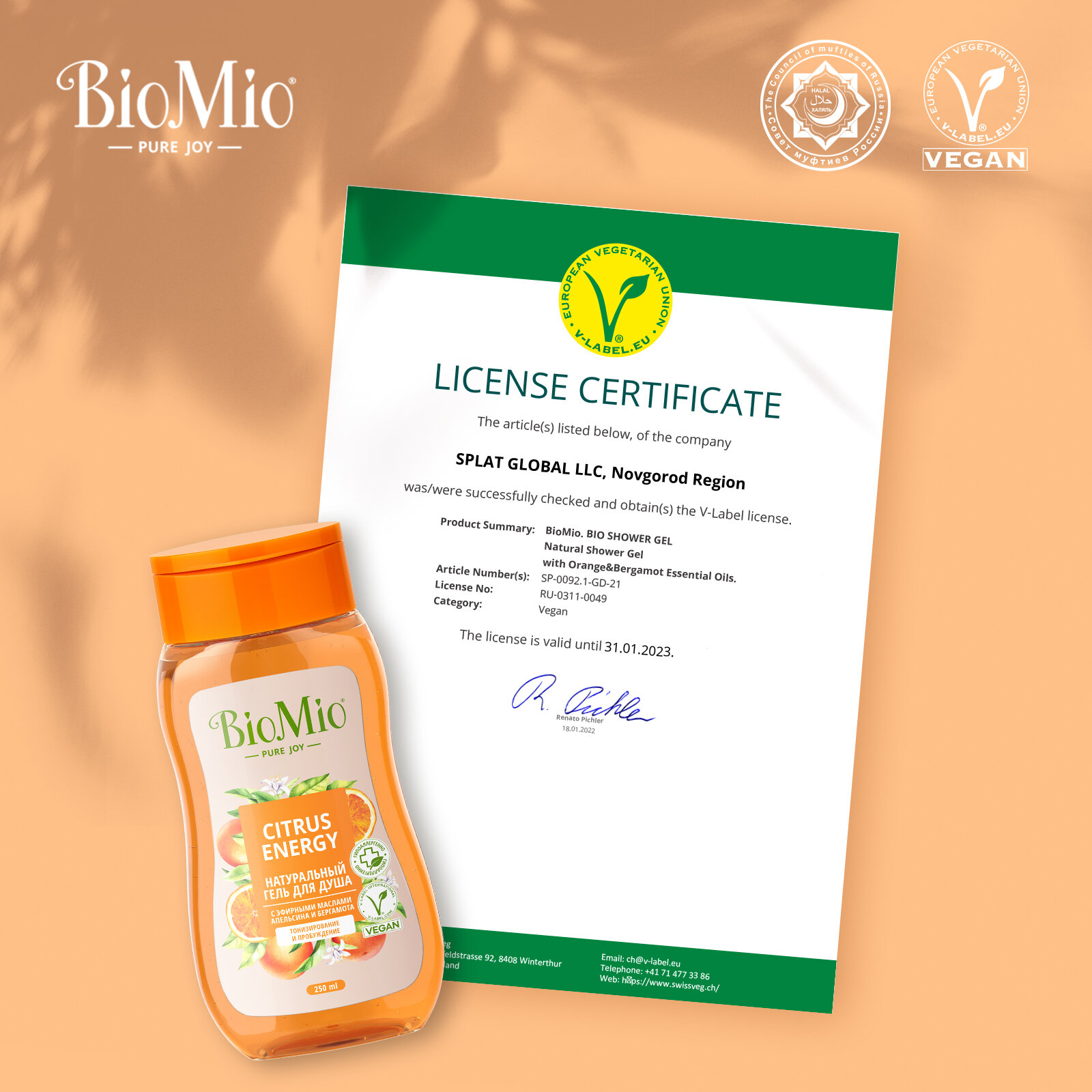 Купить БиоМио (BioMio) Bio Shower Натуральный гель для душа с эфирными маслами апельсина и бергамота Citrus Energy 250 мл 1 шт