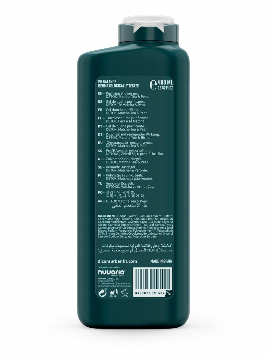 Гель д/душа Dicora Urban Fit Detox Matcha Tea & Pear Матча чай и Груша 400мл 8429871991507